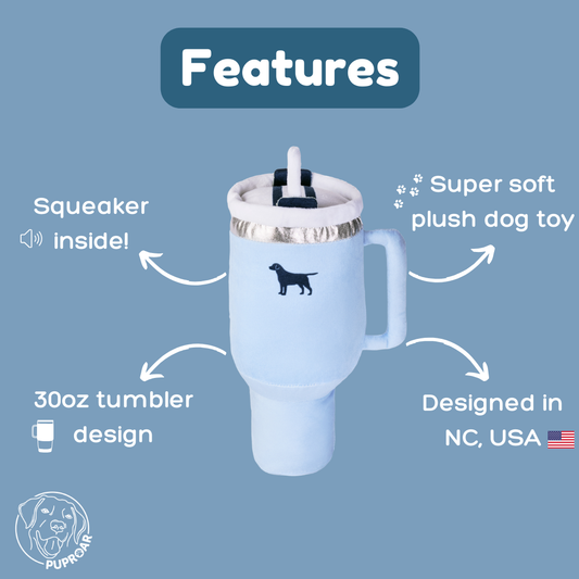 PUPROAR Pup Cup Tumbler Plush Squeaker Dog Toy: Chambray Blue