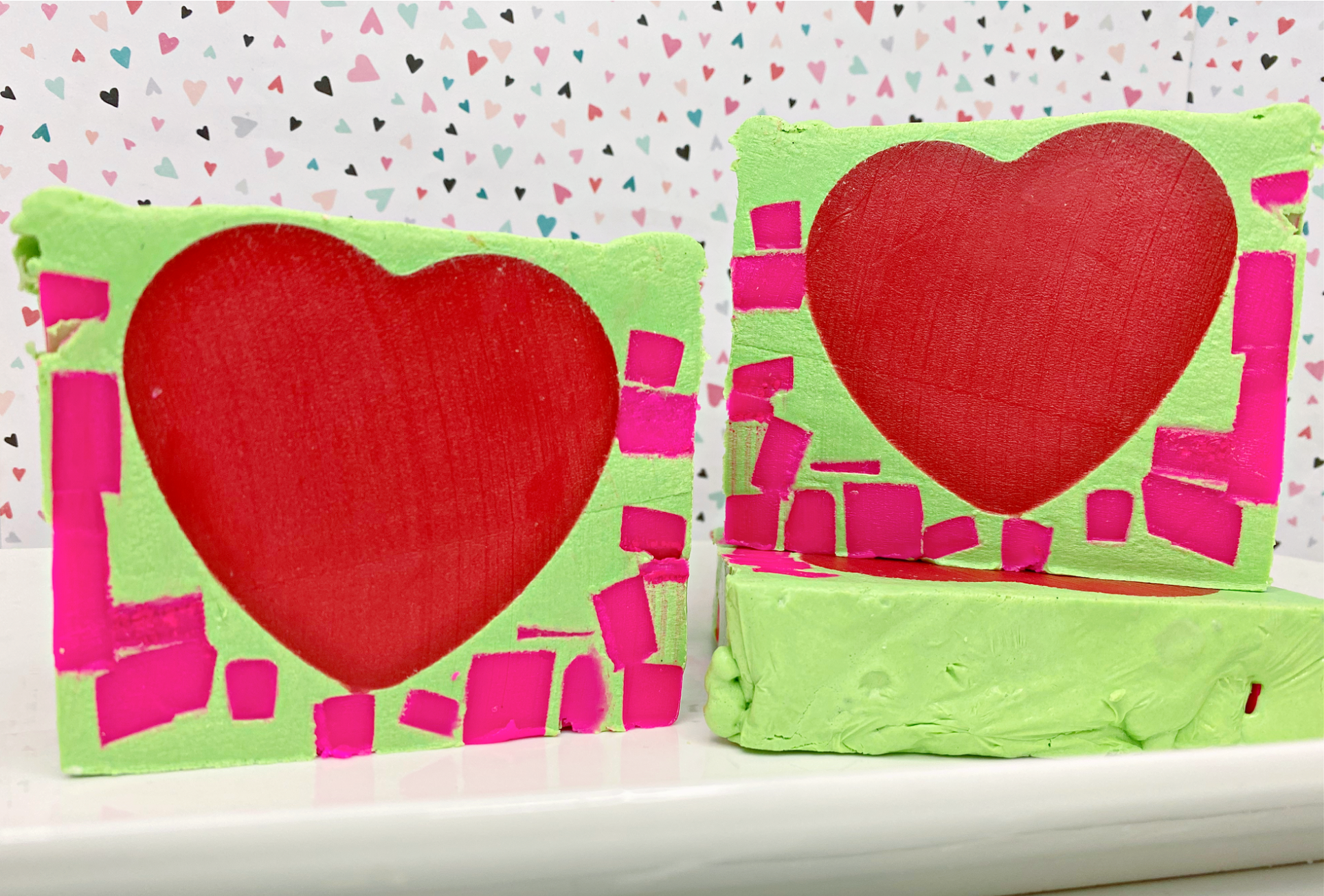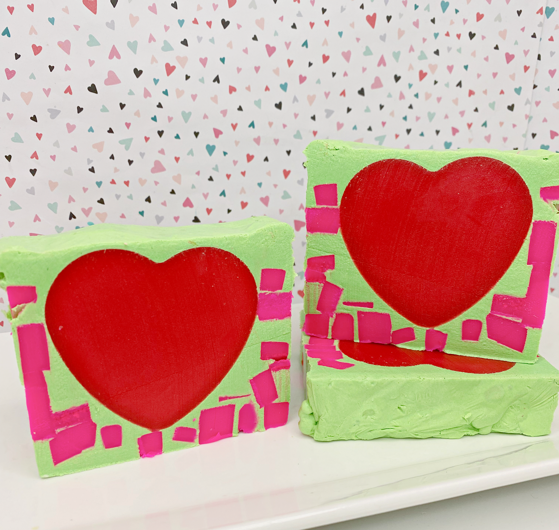 ~♥~ Each bar is approximately 5 ounces. Due to the fact that each bar is handmade and cut in small batches, bars may vary slightly in size, and color design.