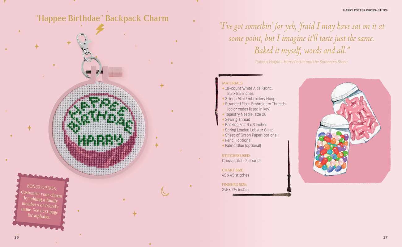 Whether you’re loyal to Gryffindor, Hufflepuff, Ravenclaw, or Slytherin, you’ll find something amazing to craft in Harry Potter Cross-Stitch. Create house pride patches to show your allegiance, stitch up Hogwarts holiday ornaments, or sit down at the Leaky Cauldron to cross-stitch some crafty Butterbeer coasters. Included in this kit are a 56-page book with step-by-step instructions for 12 projects, plus enough materials—a 6-inch bamboo hoop, two pieces of Aida fabric, 14 colors of embroidery floss, and a cross-stitch needle—to complete two projects: Hogwarts castle at night and the friendship trio featuring Harry, Ron, and Hermione. Whether adding a special touch to your home or for gifting, the finished pieces are sure to bring out the wizard in anyone who holds them.